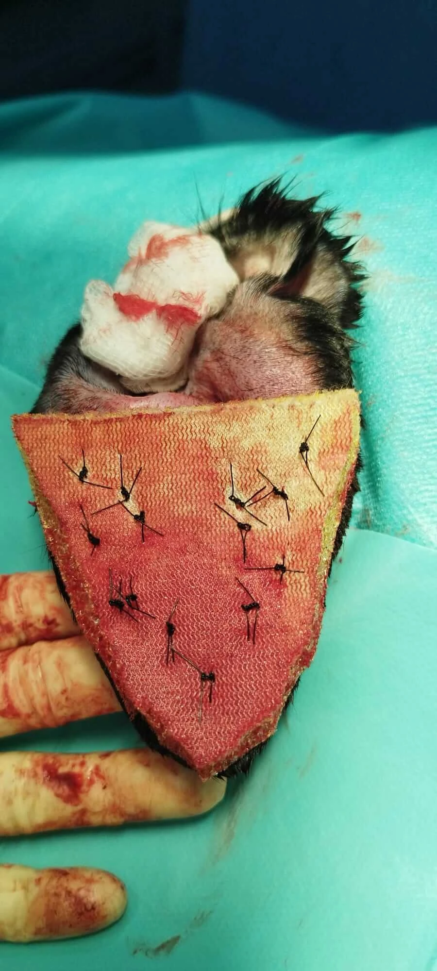 La cirugía fue bien tolerada y el animal recuperó la función oral básica en pocos días.