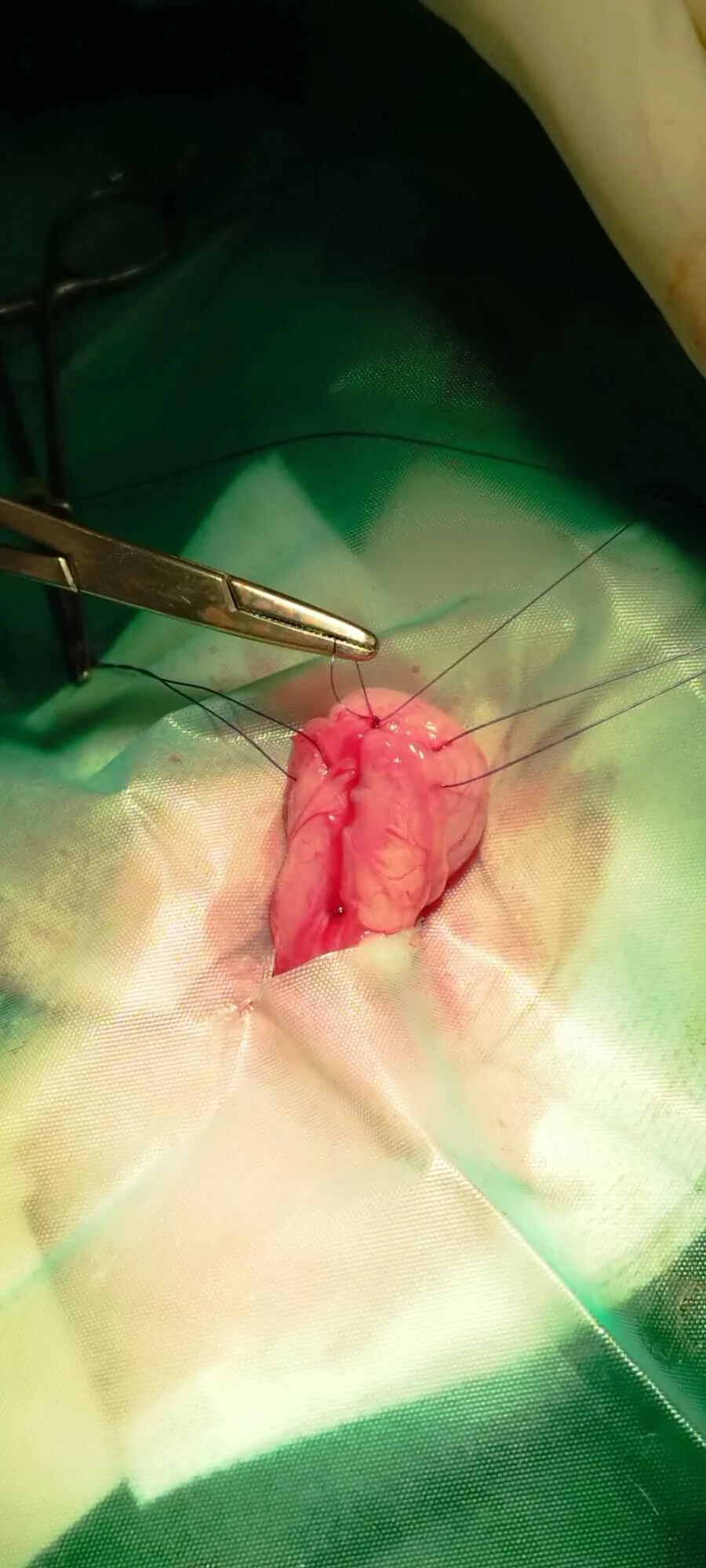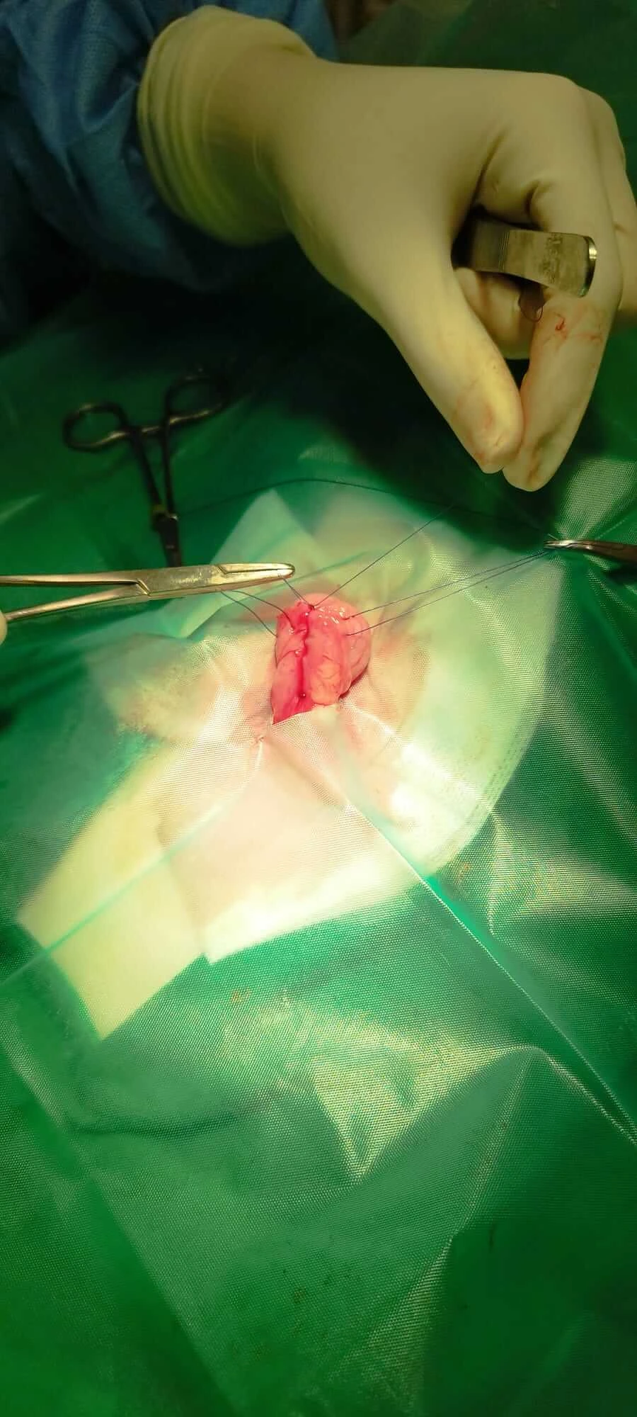El cierre se hizo por planos, con técnica cuidadosa para garantizar una buena cicatrización y evitar fugas urinarias.