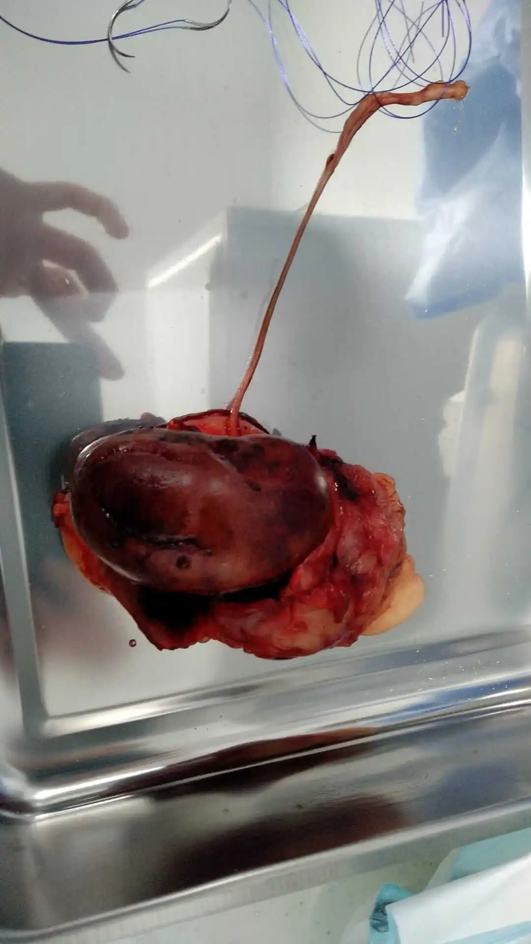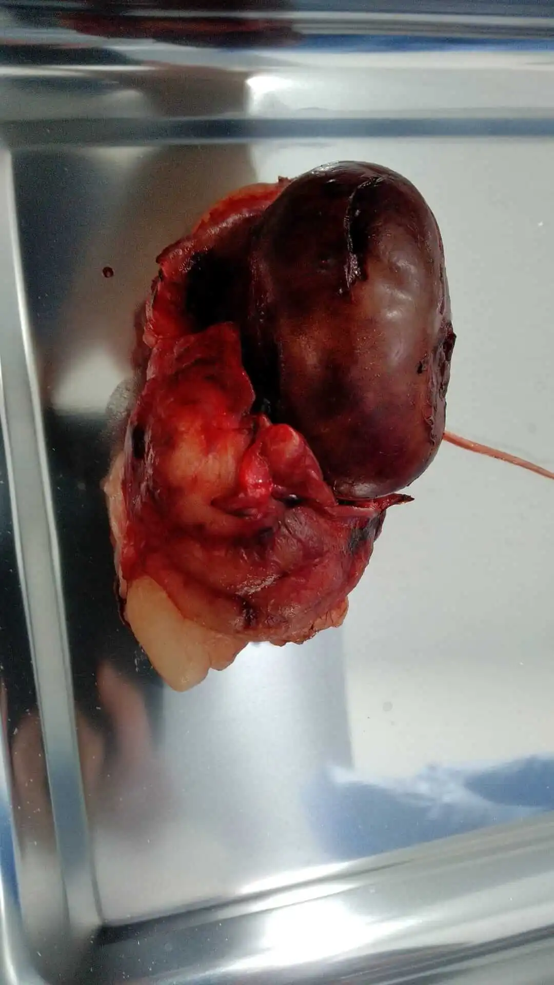 Durante la cirugía se confirmó que todo el riñón estaba invadido por un proceso tumoral, sin posibilidad de preservar tejido sano.