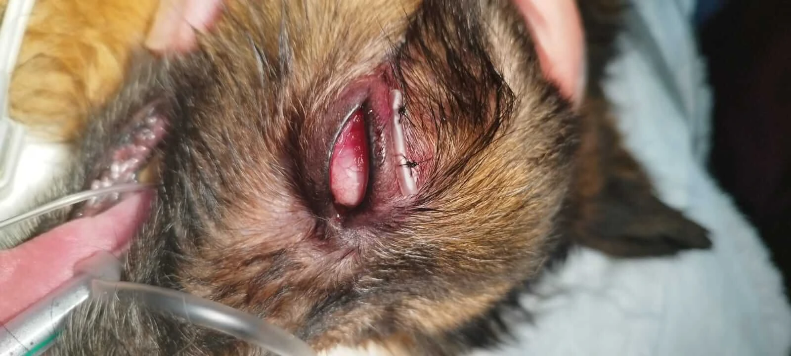 La cirugía permitió exponer correctamente el globo ocular y eliminar el roce constante que provocaba molestias e inflamación crónica.